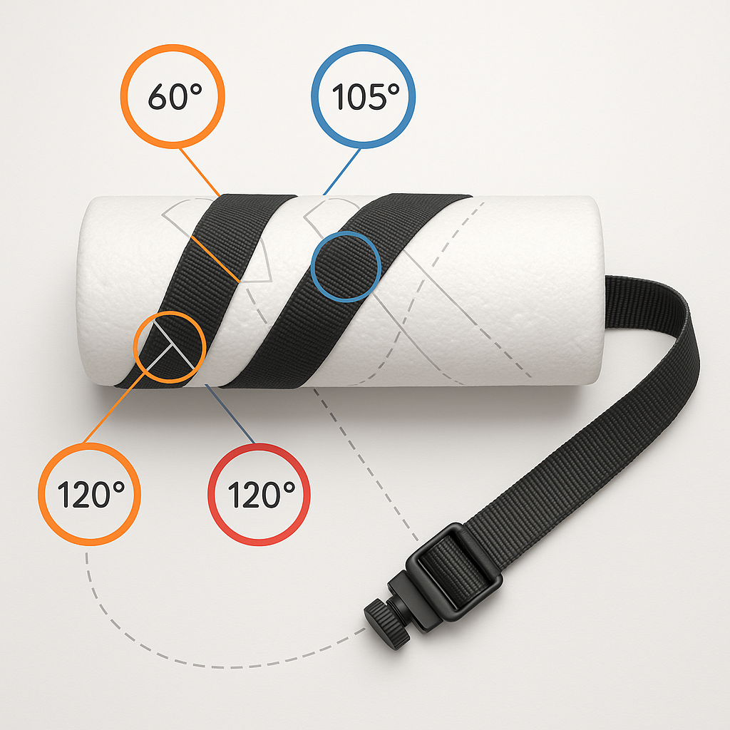 Angle the strap so the primary pull is along the shaft’s axis. If the device pulls upward or to the side, split contact into two anchor points (cross‑harness) to prevent twist.